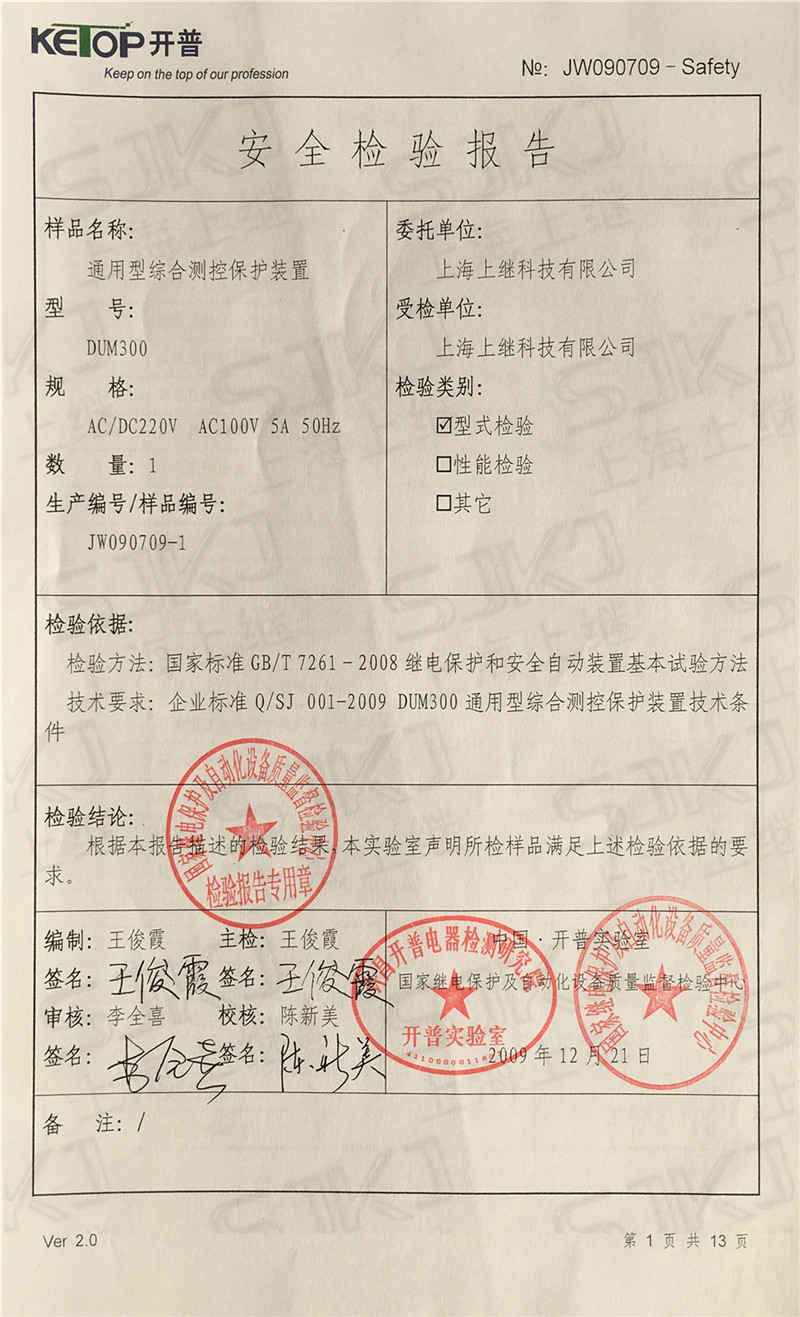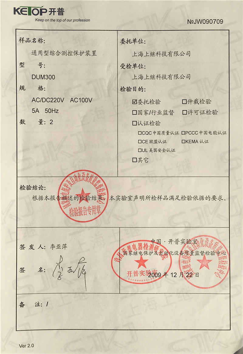 您現在的位置: 首頁 >> 客戶服務 >> 資質證書 > DUM300檢驗報告